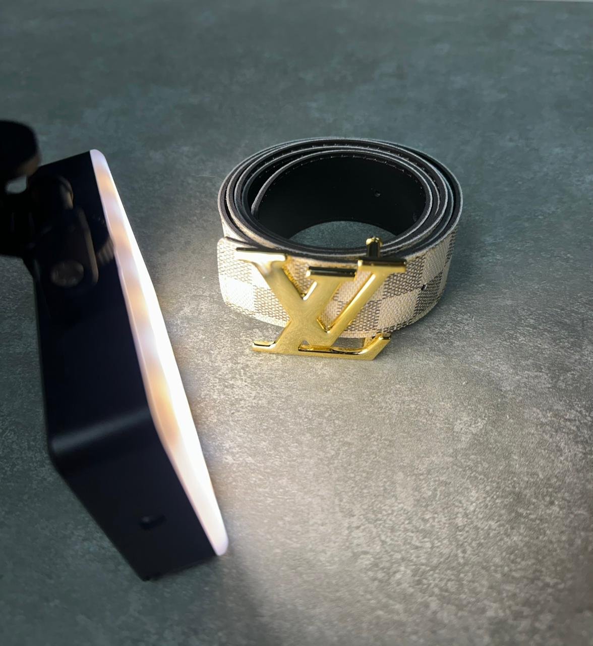 Seu modelo dupla face oferece duas opções de uso: lado bege e lado preto, proporcionando praticidade e versatilidade para diferentes combinações. A fivela dourada com detalhe LV agrega destaque e exclusividade à peça.
